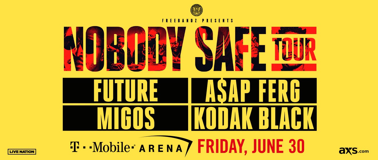 In addition, the multiplatinum, record-setting hip-hop innovator and prolific cultural force reveals details for his massive Summer 2017 headline tour, the Nobody Safe Tour. Future will headline amphitheaters and arenas across North America, and will close the tour at T-Mobile Arena on Friday, June 30. The show will feature support acts Migos, ASAP Ferg, Kodak Black and Zoey Dollaz.